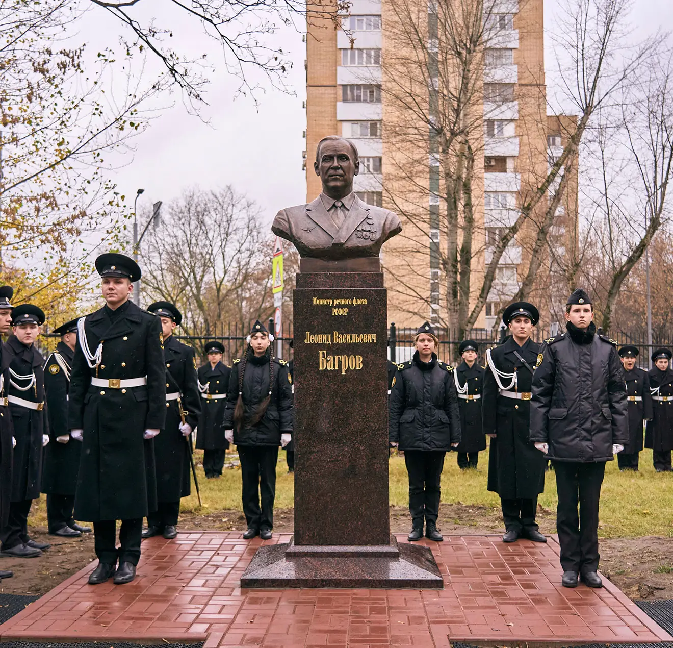 В Академии водного транспорта Российского университета транспорта состоялось торжественное открытие памятника Министру речного флота РСФСР Леониду Васильевичу Багрову, имя которого носит Колледж Академии. Дата выбрана не случайно — в этот день Леониду Васильевичу исполнилось бы 94 года.