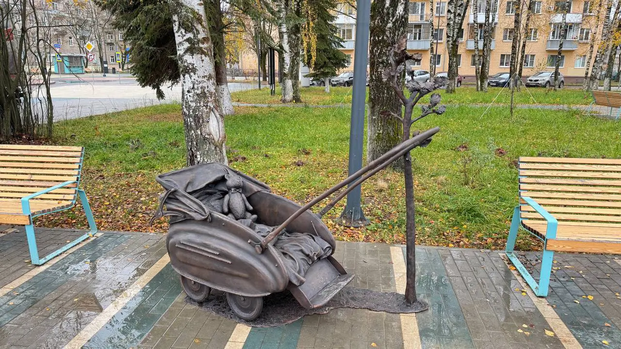 В Дубне теперь есть новый арт-объект — памятник детской коляске Такие коляски выпускали у нас в городе в 50-60-х годах. Их ещё называют «гагаринскими» — говорят, похожая была у Юрия Гагарина для его малышей.